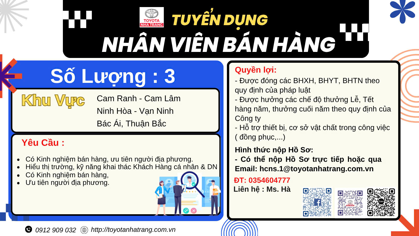 TOYOTA NHA TRANG TUYỂN DỤNG NHÂN VIÊN BÁN HÀNG THÁNG 10/2025